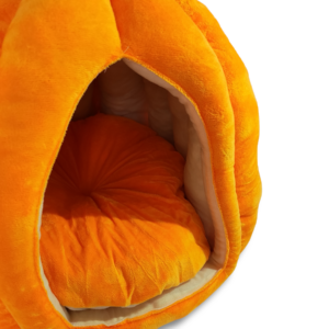 Žaismingas ir minkštas, moliūgo imitacijos guolis tinkamas katėms iki 5 kg.